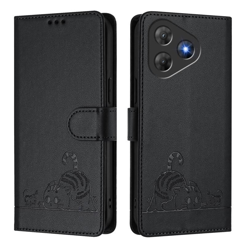For Blackview Oscal Flat 2 / 2C Cat Rat Embossed Pattern RFID Leather Phone Case with Lanyard(Black)