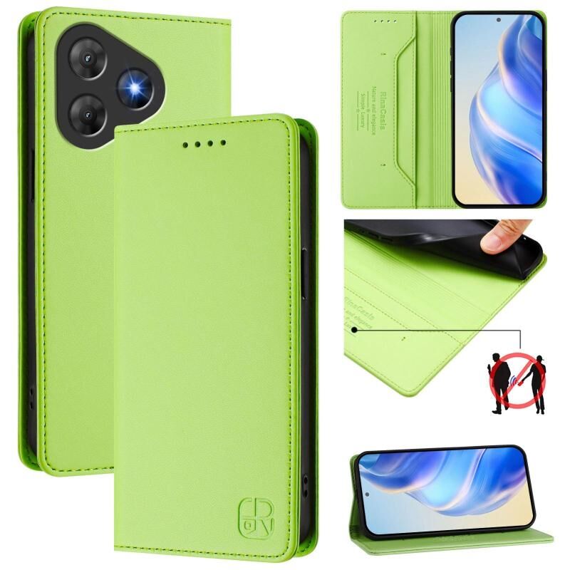 For Blackview Oscal Flat 2 / 2C RC01 Dual-Folded Magnetic Suction RFID Leather Phone Case(Grass Green)