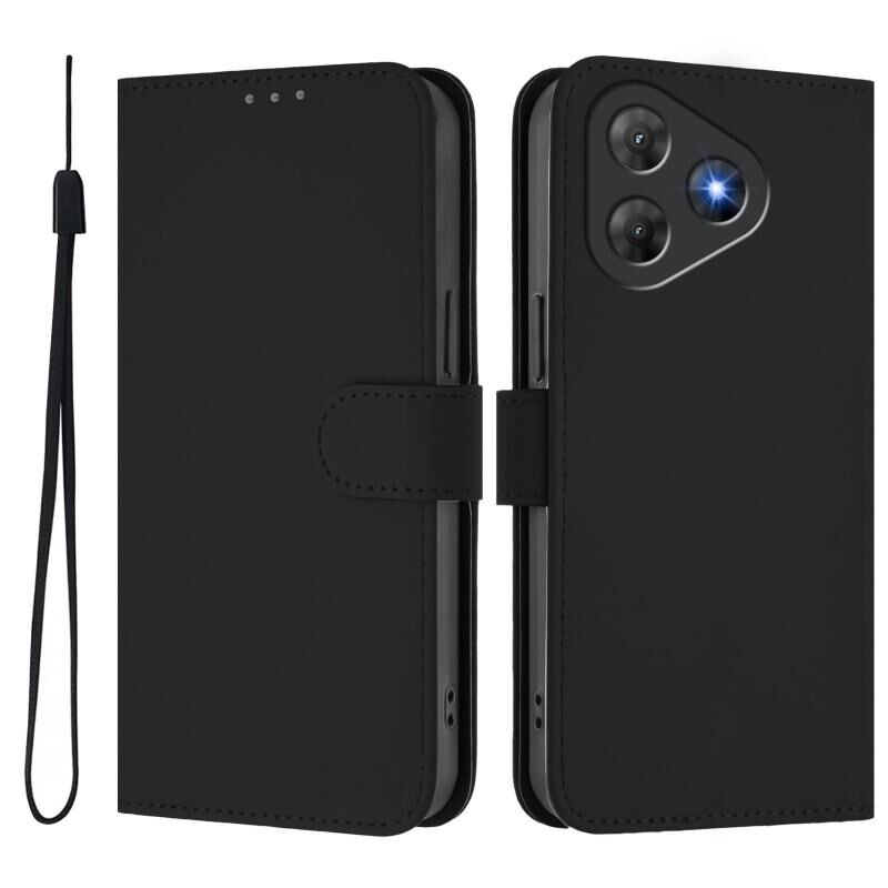For Blackview Oscal Flat 2 / 2C Skin Feel Solid Color Leather Phone Case with Lanyard(Black)