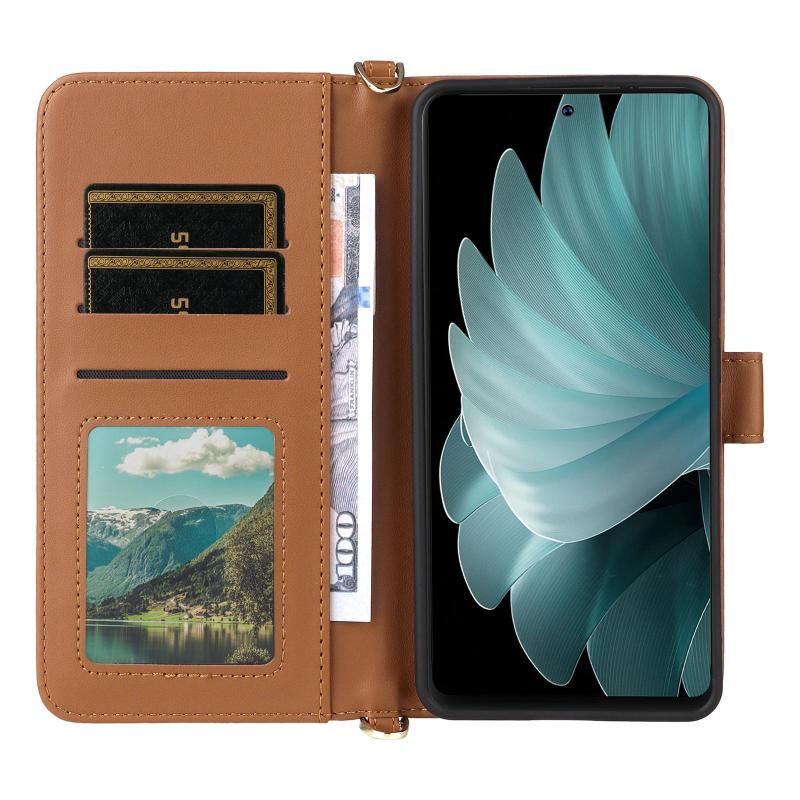 Θήκη τηλεφώνου δέρματινη για Blackview Oscal Tiger 13, πολυλειτουργική με 6 θέσεις για κάρτες και λουρί καρπού (Ροζ)