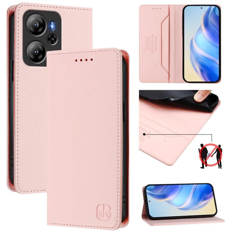 For Blackview Oscal Tiger 13 RC01 Dual-Folded Magnetic Suction RFID Leather Phone Case(Pink)