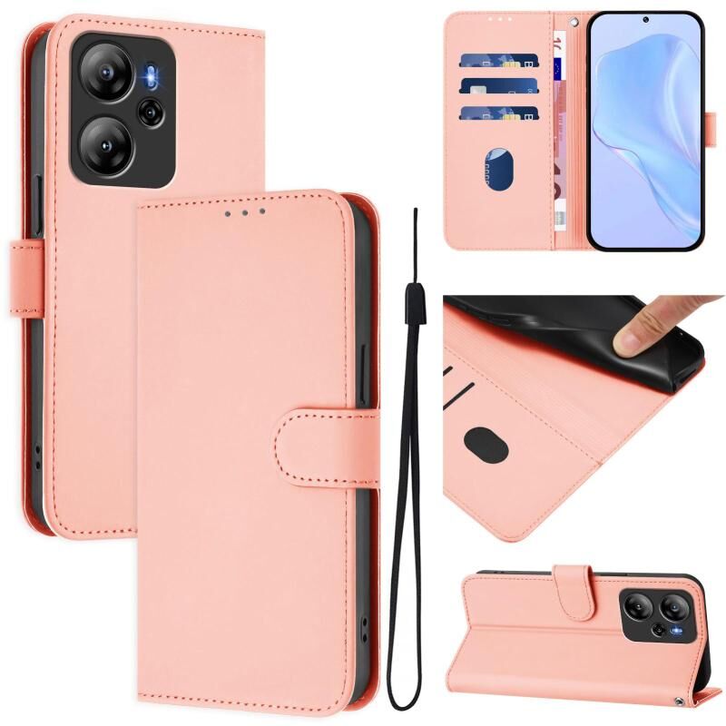 For Blackview Oscal Tiger Skin Feel Solid Color Leather Phone Case with Lanyard(Pink)