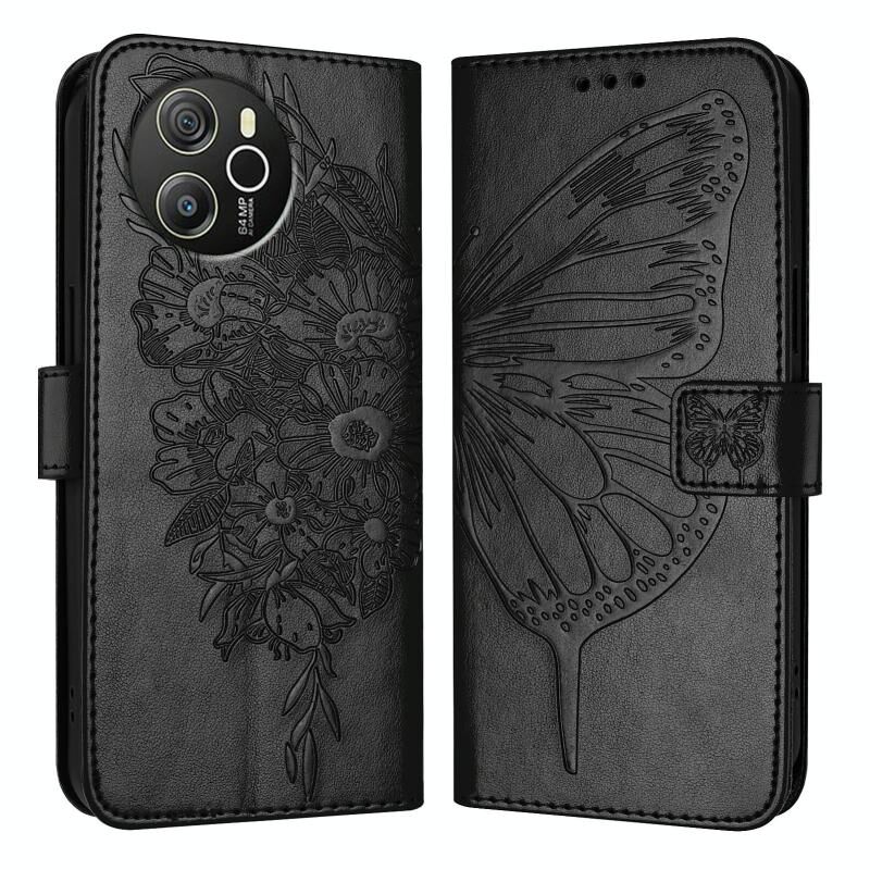 Για Blackview Shark 8 ανάγλυφη πεταλούδα δερμάτινη θήκη τηλεφώνου (μαύρο)