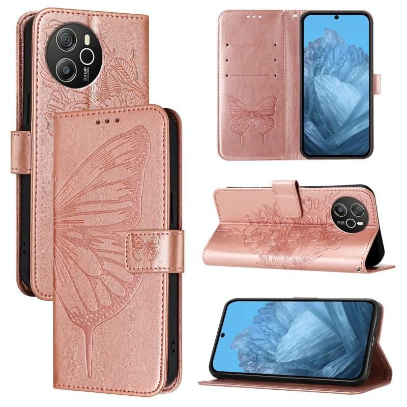 Για Blackview Shark 8 ανάγλυφη πεταλούδα δερμάτινη θήκη τηλεφώνου (ροζ χρυσό)