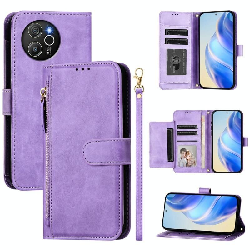 Για Blackview Shark 8 / Oscal Tiger 12 Multi-Card Slots φερμουάρ πορτοφόλι δερμάτινη θήκη τηλεφώνου (μωβ)