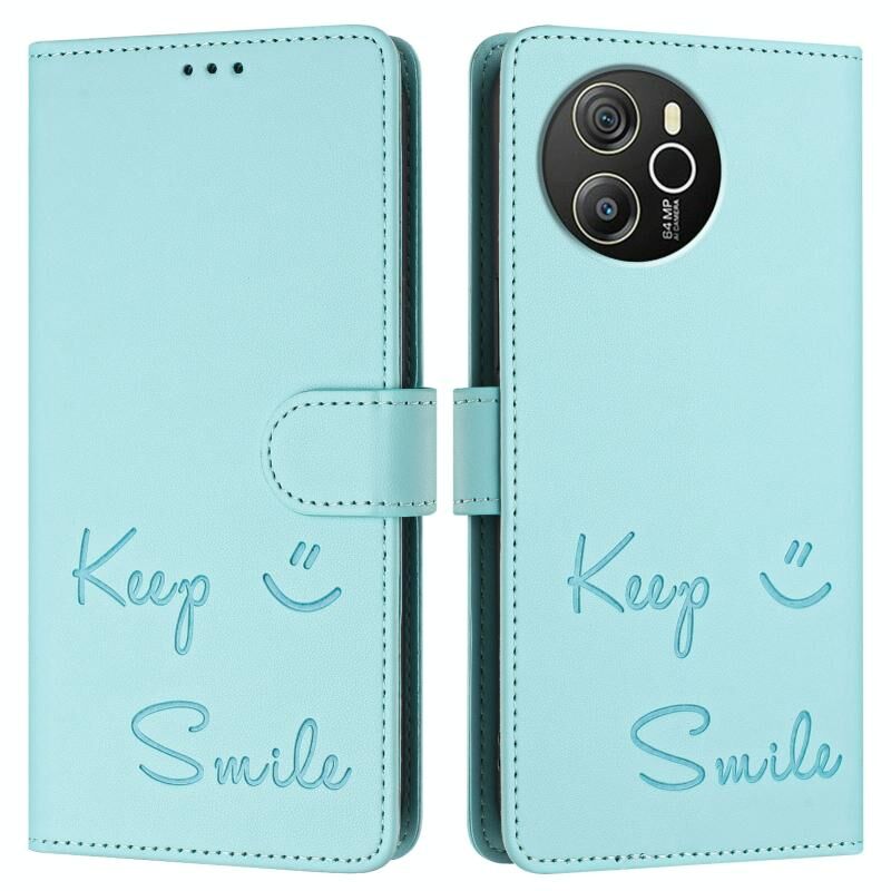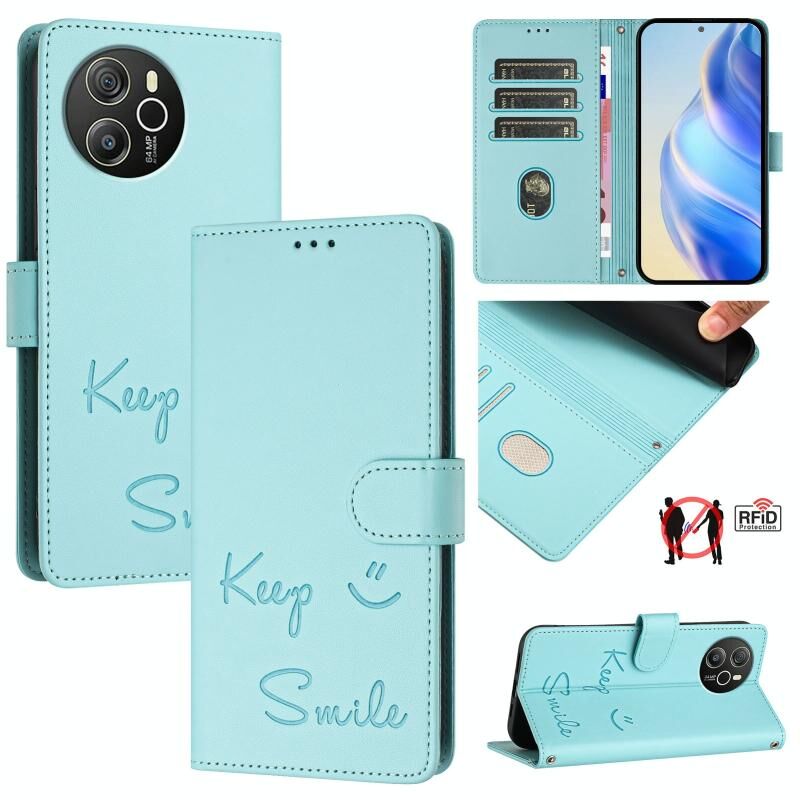 Για Blackview Shark 8 Χαμόγελο ανάγλυφο RFID δερμάτινη θήκη τηλεφώνου (πράσινο μέντα)