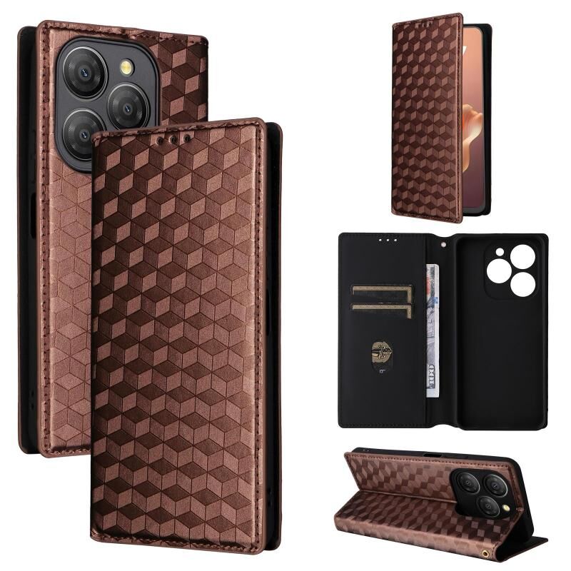 For Blackview Shark 9 Cubic Grid Texture Flip Leather Phone Case(Brown)