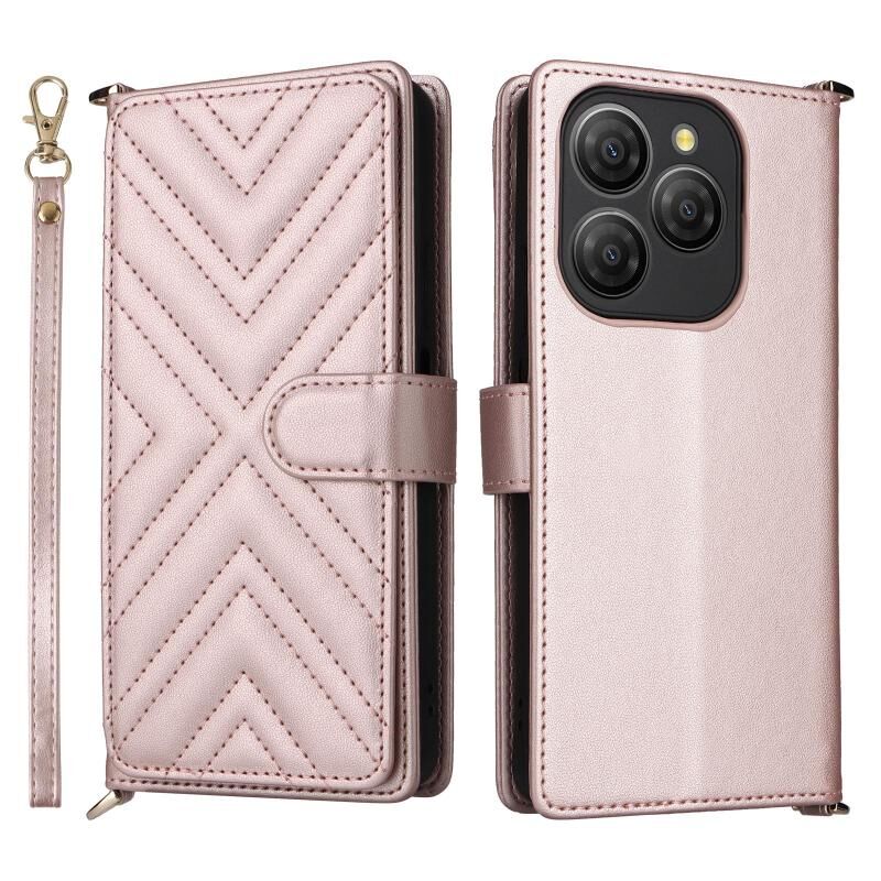 Θήκη τηλεφώνου δερμάτινη για Blackview Shark 9, πολυλειτουργική με 6 θέσεις για κάρτες και λουρί καρπού (Ροζ)