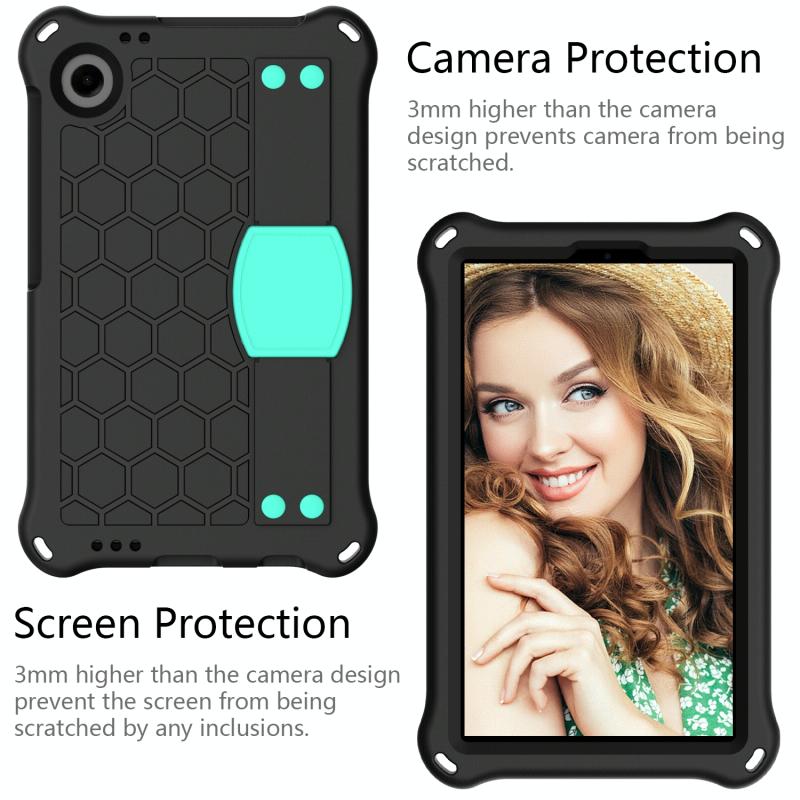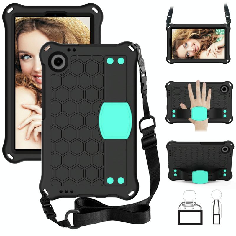 For Blackview Tab 60 8.7 2023 Honeycomb EVA Hybrid PC Tablet Case with Strap(Black+Aqua)