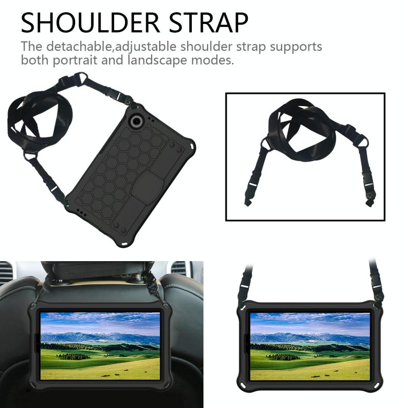 For Blackview Tab 60 8.7 2023 Honeycomb EVA Hybrid PC Tablet Case with Strap(Black+Black)
