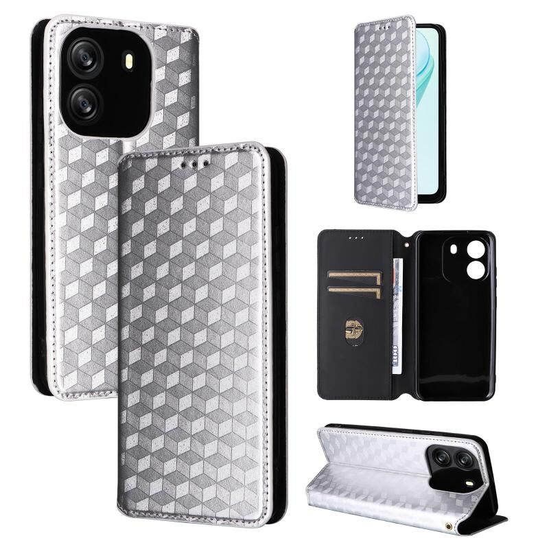 For Blackview Wave 6C Cubic Grid Texture Flip Leather Phone Case(Silver)