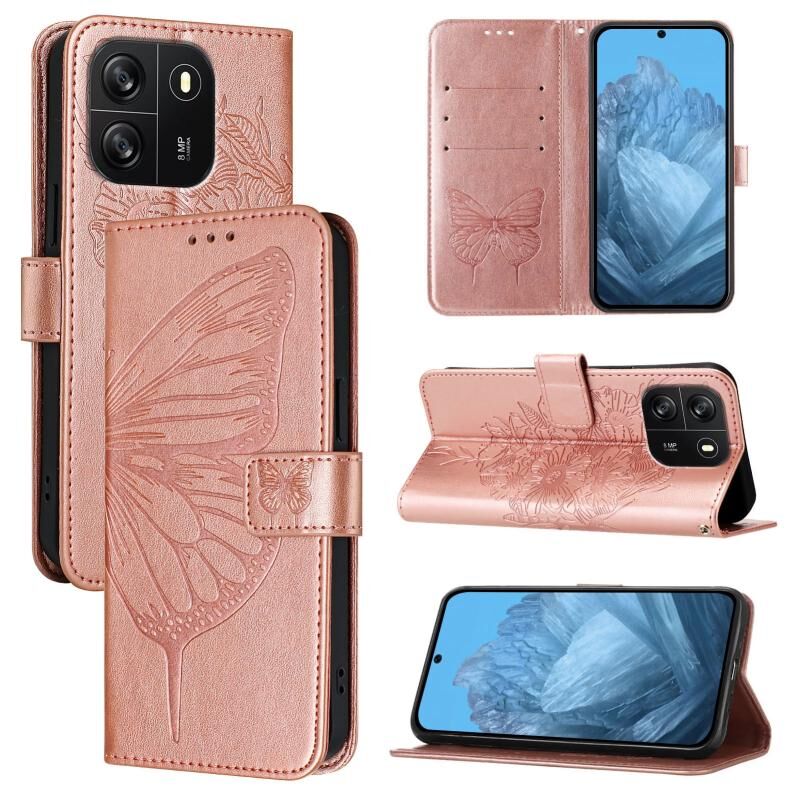 Για Blackview Wave 6C ανάγλυφη πεταλούδα δερμάτινη θήκη τηλεφώνου (ροζ χρυσό)