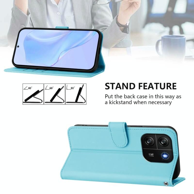 Για Blackview Wave 6C δέρμα αίσθηση Solid Color δερμάτινη θήκη τηλεφώνου με κορδόνι (Sky Blue)