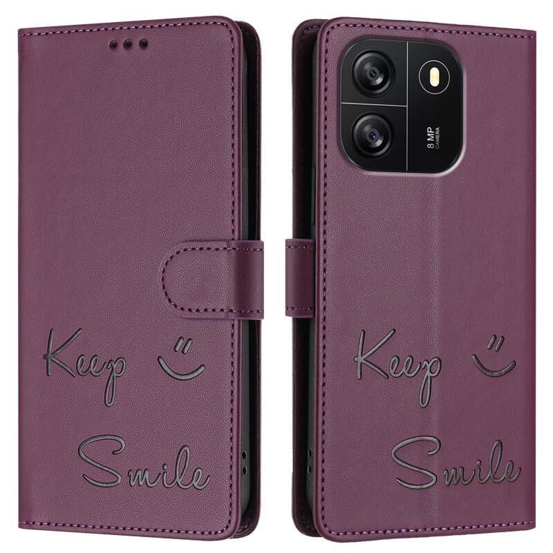Για Blackview Wave 6C Χαμόγελο ανάγλυφο RFID δερμάτινη θήκη τηλεφώνου (Violet)