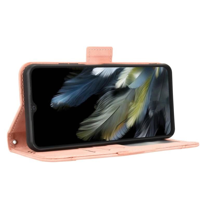Θήκη τηλεφώνου από δέρμα με υφή μοσχαριού, με θήκες για κάρτες, για Blackview Wave 8 / 8C / Oscal Flat 2 (Ροζ)