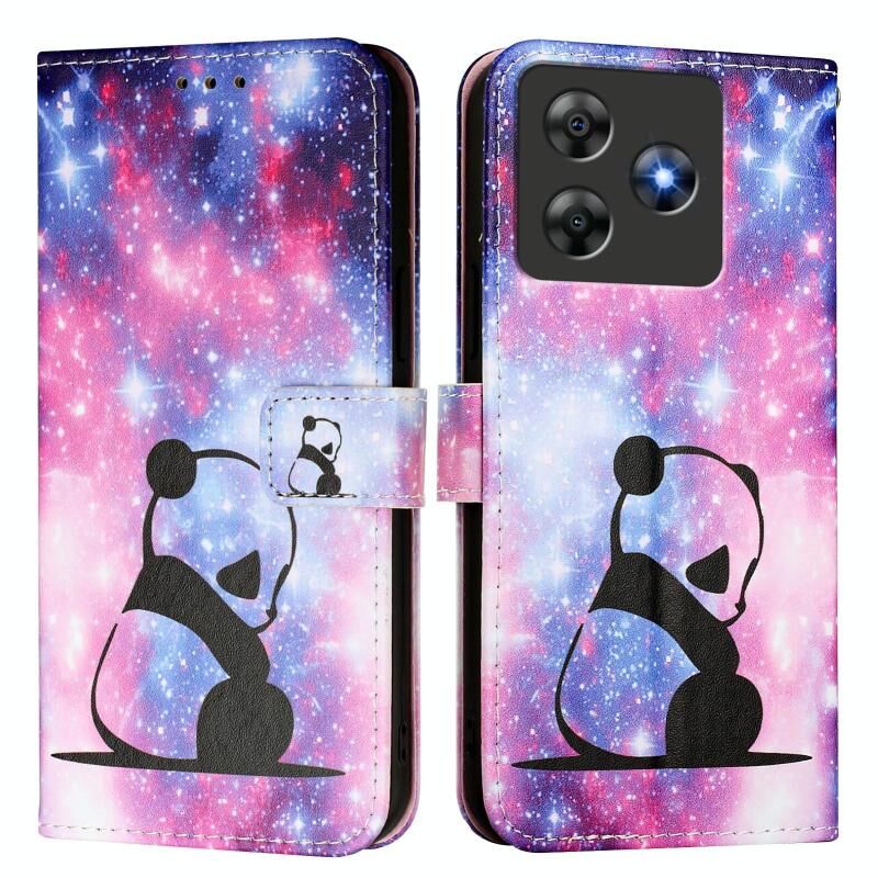 Θήκη τηλεφώνου Blackview Wave 8C με σχέδιο πολύχρωμης ζωγραφικής, απλή ύφανση δέρματος (Baby Panda)