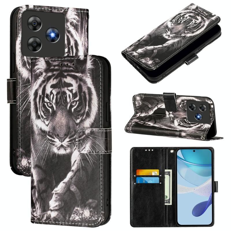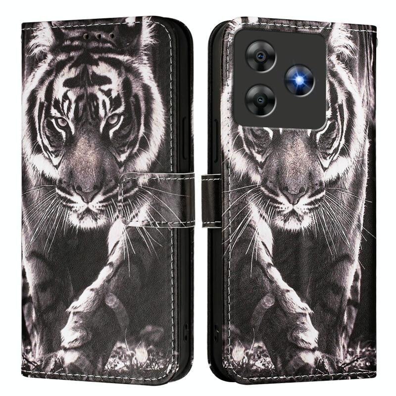 Θήκη τηλεφώνου Blackview Wave 8C από δέρμα με απλή ύφανση, με έγχρωμο σχέδιο (τίγρης ασπρόμαυρη).