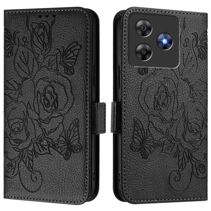 For Blackview Wave 8C Embossed Rose RFID Anti-theft Leather Phone Case(Black)