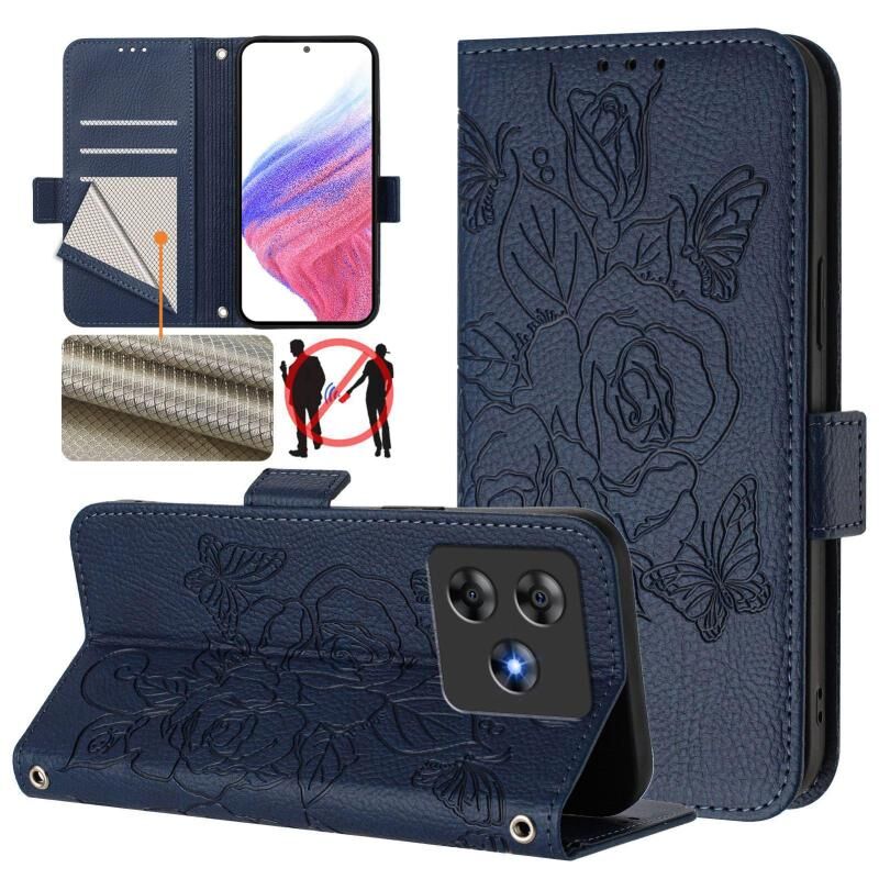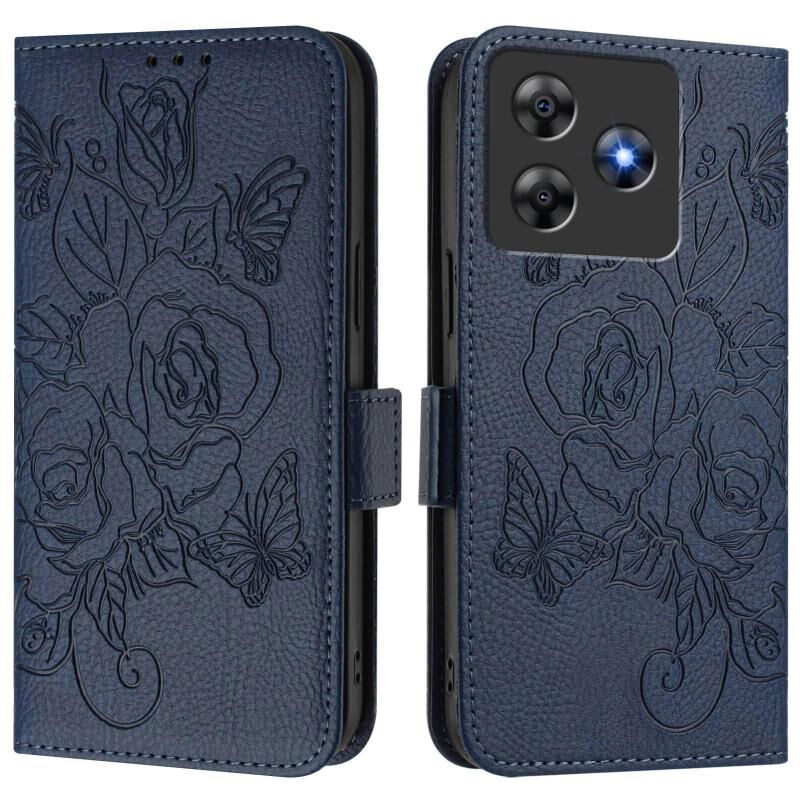 For Blackview Wave 8C Embossed Rose RFID Anti-theft Leather Phone Case(Dark Blue)