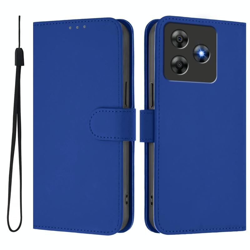 Για Blackview Wave 8C δέρμα αισθάνονται στερεό χρώμα δερμάτινη θήκη τηλεφώνου με κορδόνι (σκούρο μπλε)