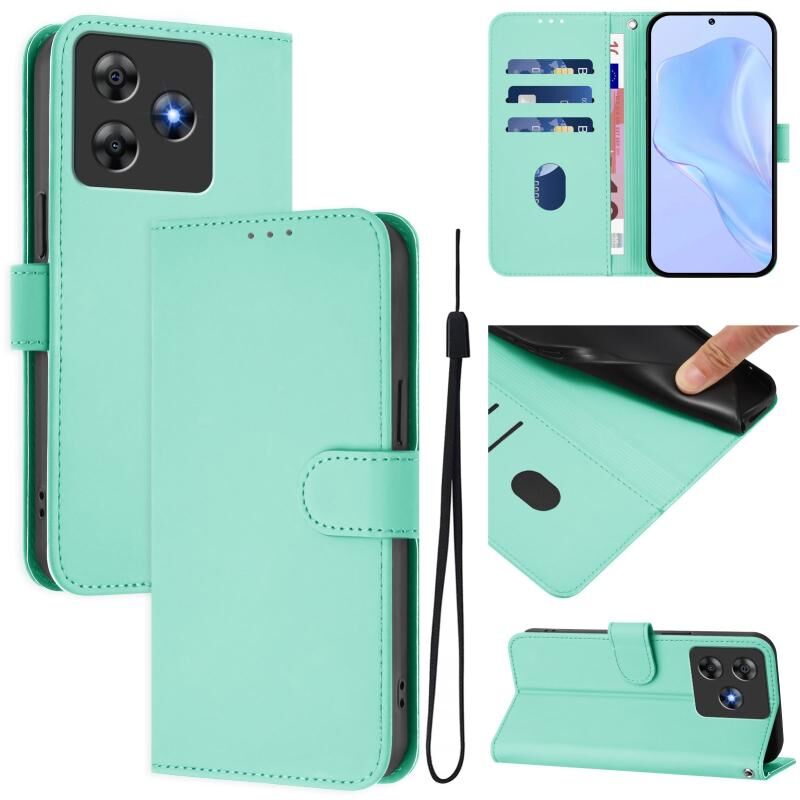 Για Blackview Wave 8C δέρμα αισθάνονται στερεό χρώμα δερμάτινη θήκη τηλεφώνου με κορδόνι (πράσινο μέντα)