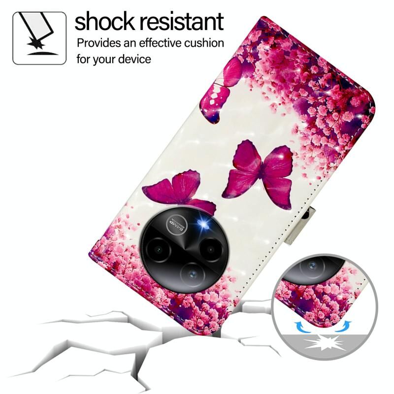 Θήκη τηλεφώνου από δέρμα με οριζόντιο άνοιγμα και τρισδιάστατη ζωγραφική για BLU Bold K50 (Ροζ Πεταλούδα)
