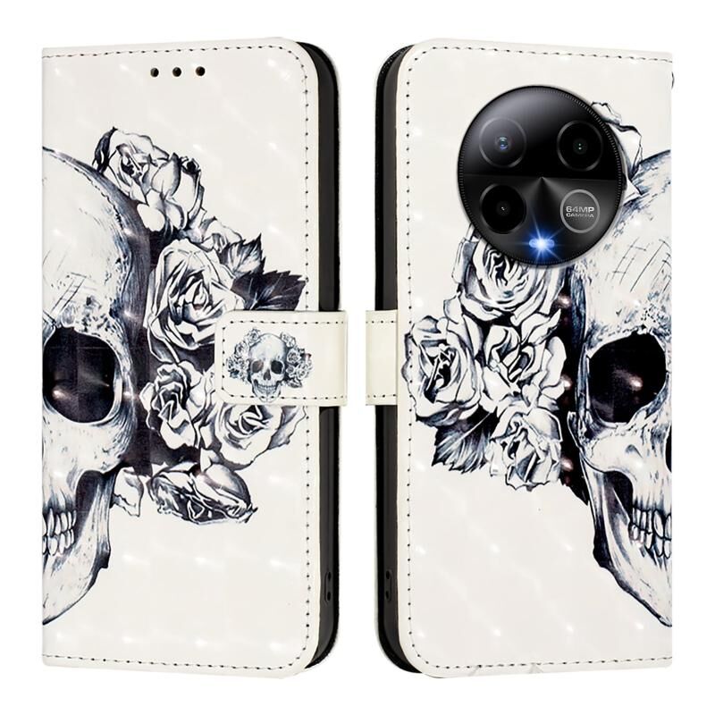 Θήκη τηλεφώνου από δέρμα με οριζόντιο άνοιγμα και τρισδιάστατη ζωγραφική για BLU Bold K50 (Κρανίο)