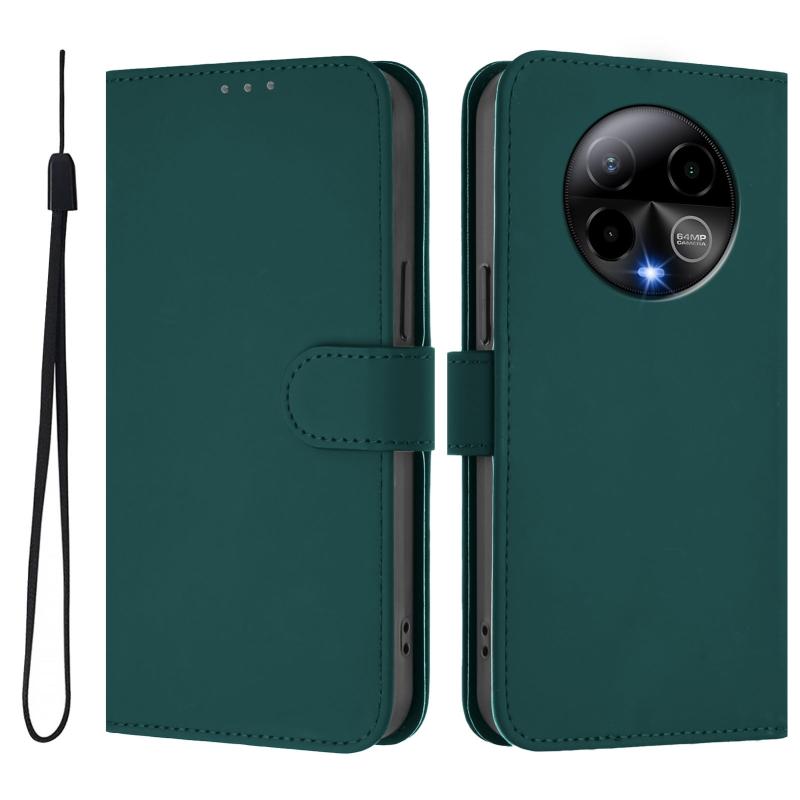 For BLU Bold K50 Skin Feel Solid Color Leather Phone Case with Lanyard(Dark Green)