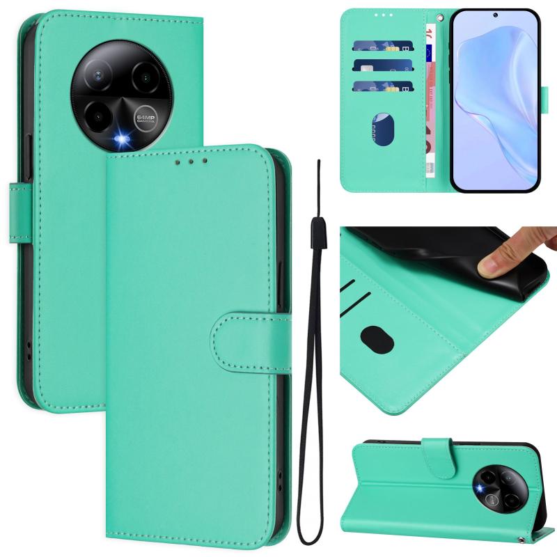 For BLU Bold K50 Skin Feel Solid Color Leather Phone Case with Lanyard(Green)