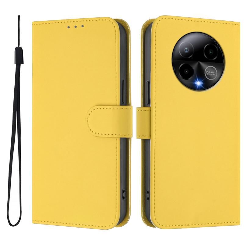 For BLU Bold K50 Skin Feel Solid Color Leather Phone Case with Lanyard(Lemon Yellow)