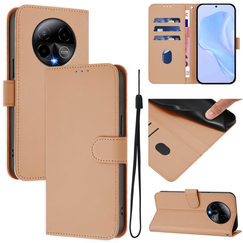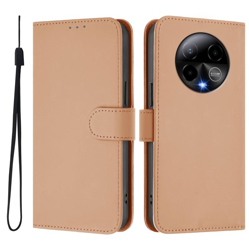 For BLU Bold K50 Skin Feel Solid Color Leather Phone Case with Lanyard(Nude)