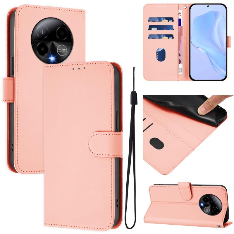 For BLU Bold K50 Skin Feel Solid Color Leather Phone Case with Lanyard(Pink)