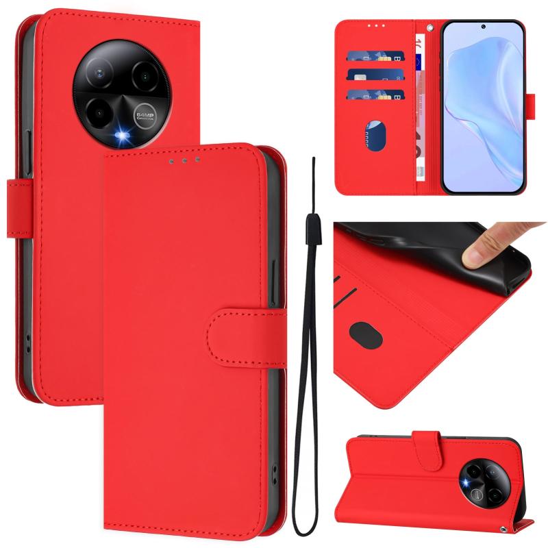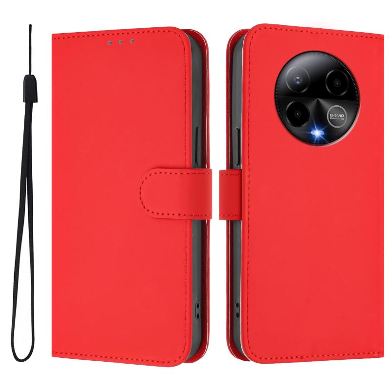 For BLU Bold K50 Skin Feel Solid Color Leather Phone Case with Lanyard(Red)