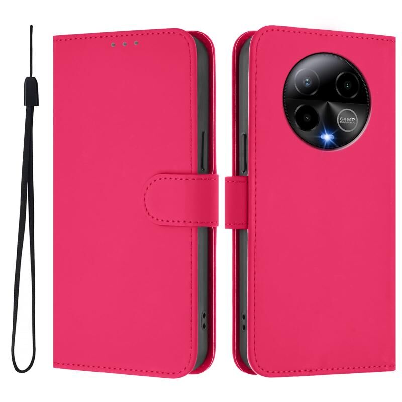 For BLU Bold K50 Skin Feel Solid Color Leather Phone Case with Lanyard(Rose Red)