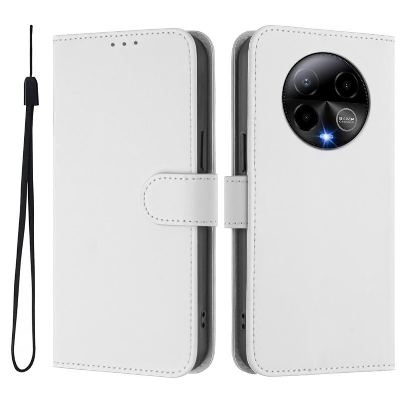 For BLU Bold K50 Skin Feel Solid Color Leather Phone Case with Lanyard(White)
