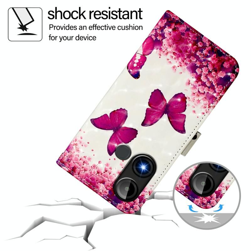 Θήκη τηλεφώνου από δέρμα με τρισδιάστατη ζωγραφική και οριζόντια αναδίπλωση για BLU C9 (Ροζ Πεταλούδα)