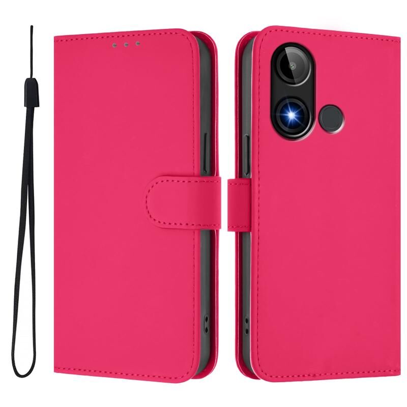 For BLU C9 Skin Feel Solid Color Leather Phone Case with Lanyard(Rose Red)