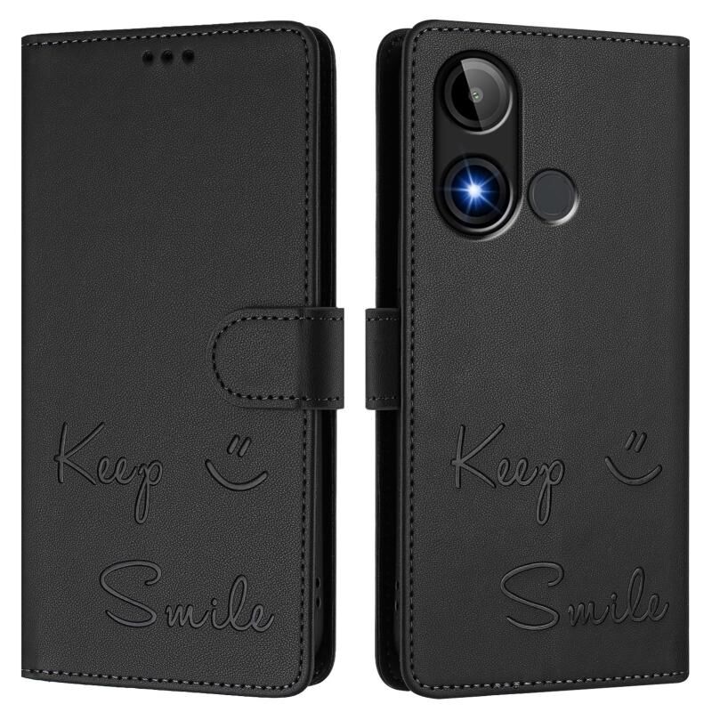 Για BLU C9 Χαμόγελο ανάγλυφο RFID δερμάτινη θήκη τηλεφώνου (Μαύρο)