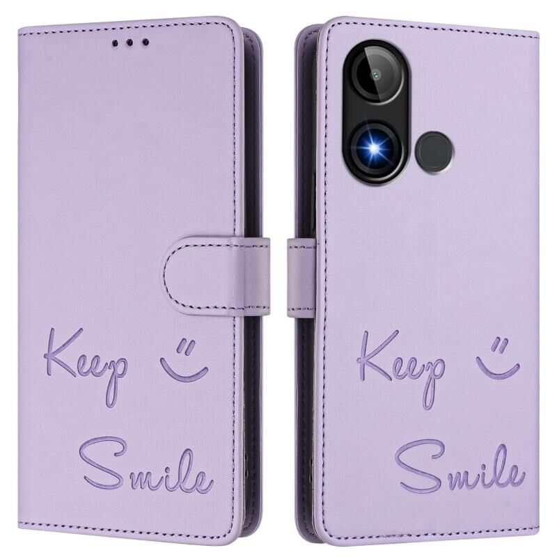 Για BLU C9 Χαμόγελο ανάγλυφο RFID δερμάτινη θήκη τηλεφώνου (Light Purple)