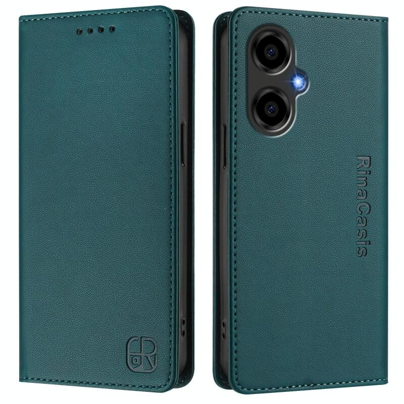 Θήκη τηλεφώνου δερμάτινη με μαγνητική απορρόφηση και προστασία RFID για BLU G64 RC01 διπλού τύπου (Σκούρο Πράσινο)