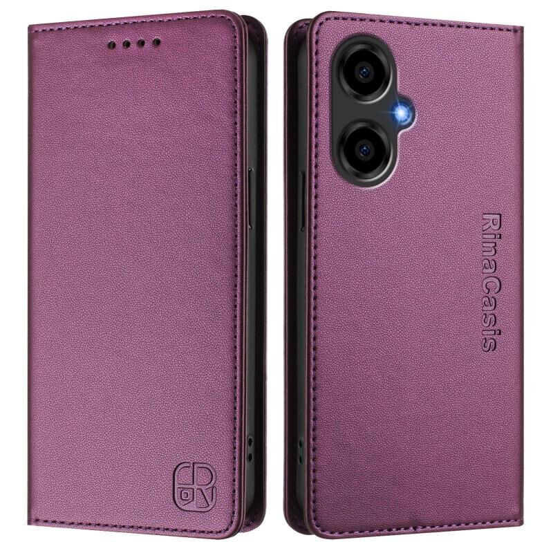 Θήκη τηλεφώνου δερμάτινη με μαγνητική απορρόφηση και προστασία RFID για BLU G64 RC01 διπλού τύπου (Βιολετί)