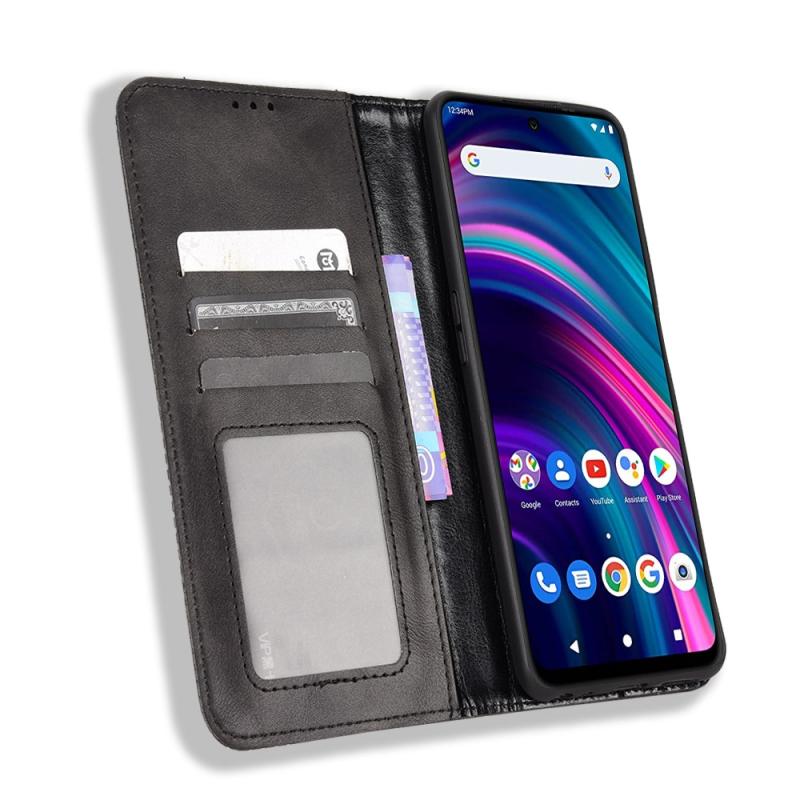 Θήκη τηλεφώνου BLU G91 Max με μαγνητικό κούμπωμα, δέρμα Crazy Horse σε ρετρό στυλ (Μαύρο)