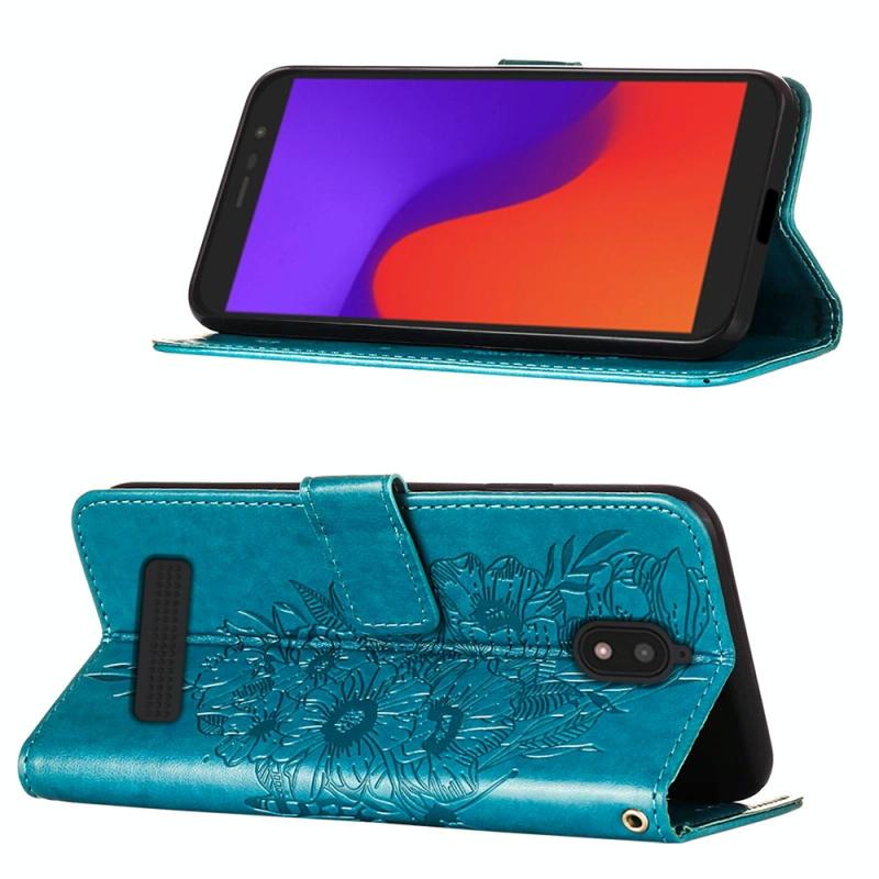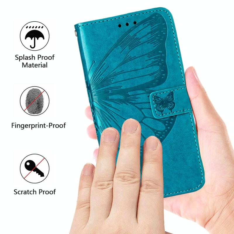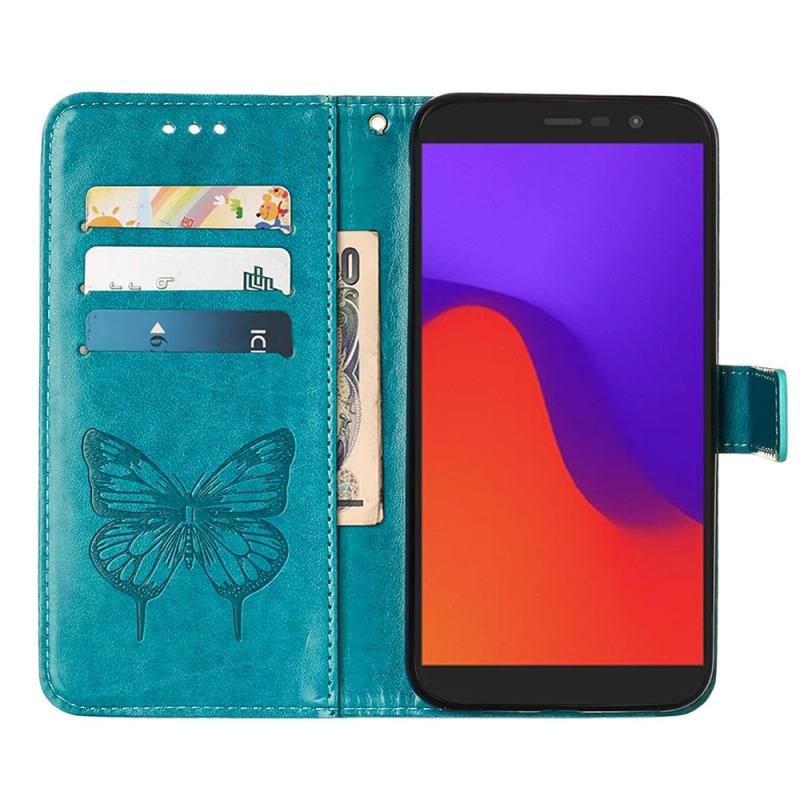 Θήκη τηλεφώνου από δέρμα με σχέδιο πεταλούδας σε ανάγλυφο για BLU View 2 2022 / 2020 (Μπλε)