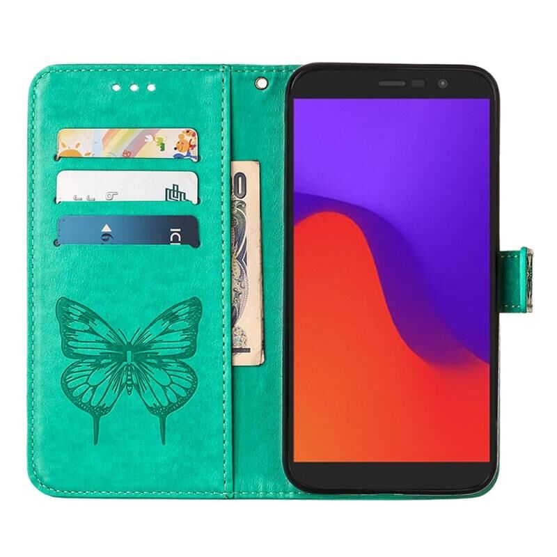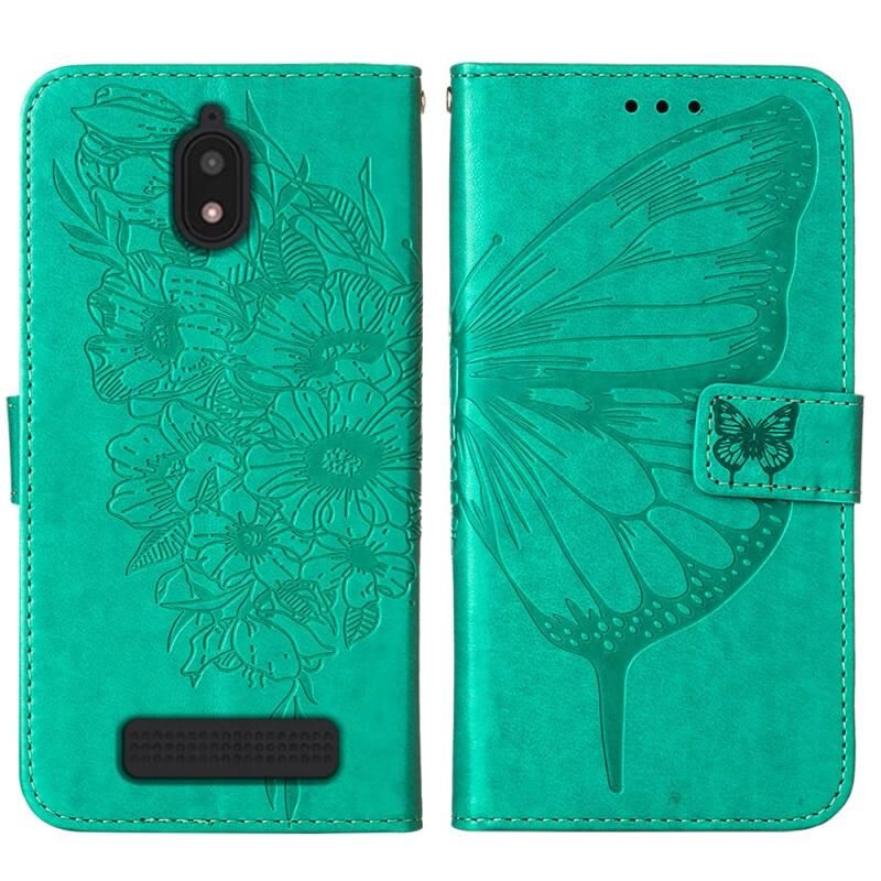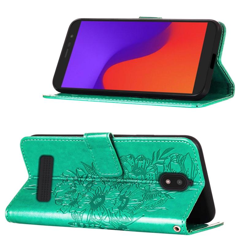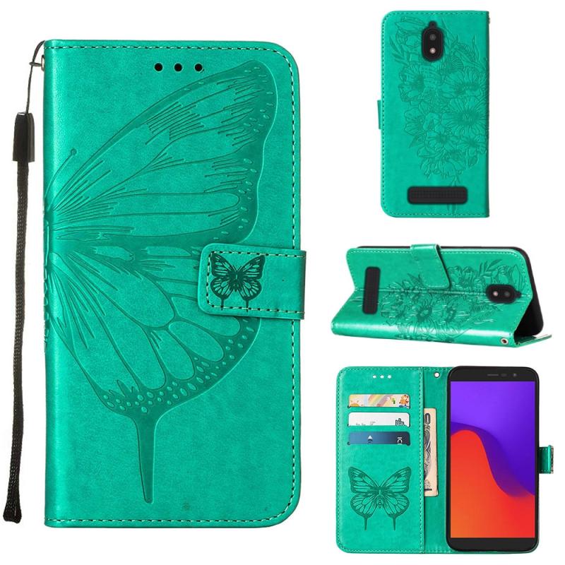 Θήκη τηλεφώνου από δέρμα με σχέδιο πεταλούδας σε ανάγλυφο για BLU View 2 2022 / 2020 (πράσινο)