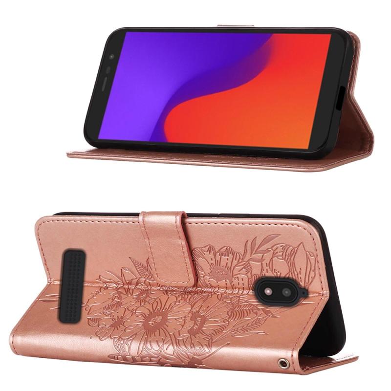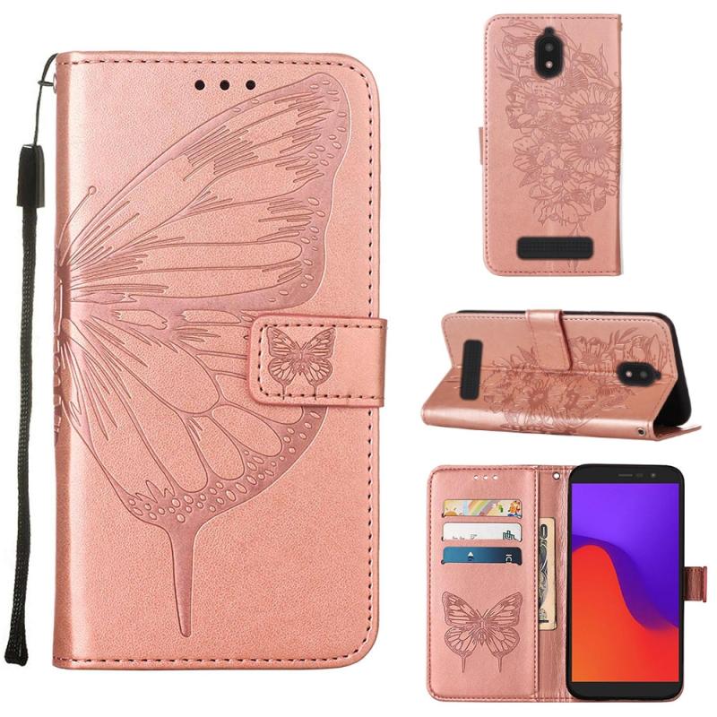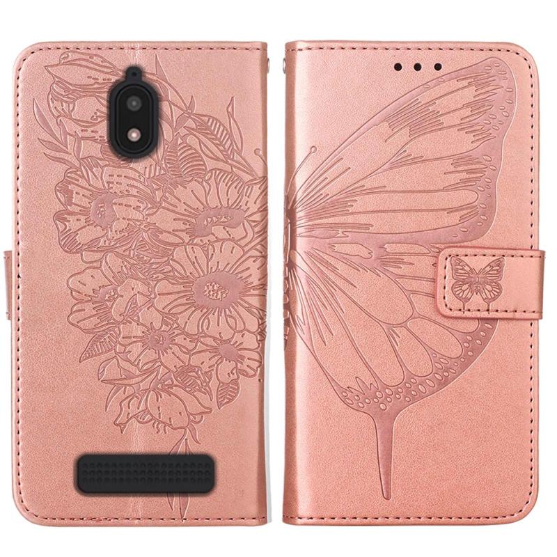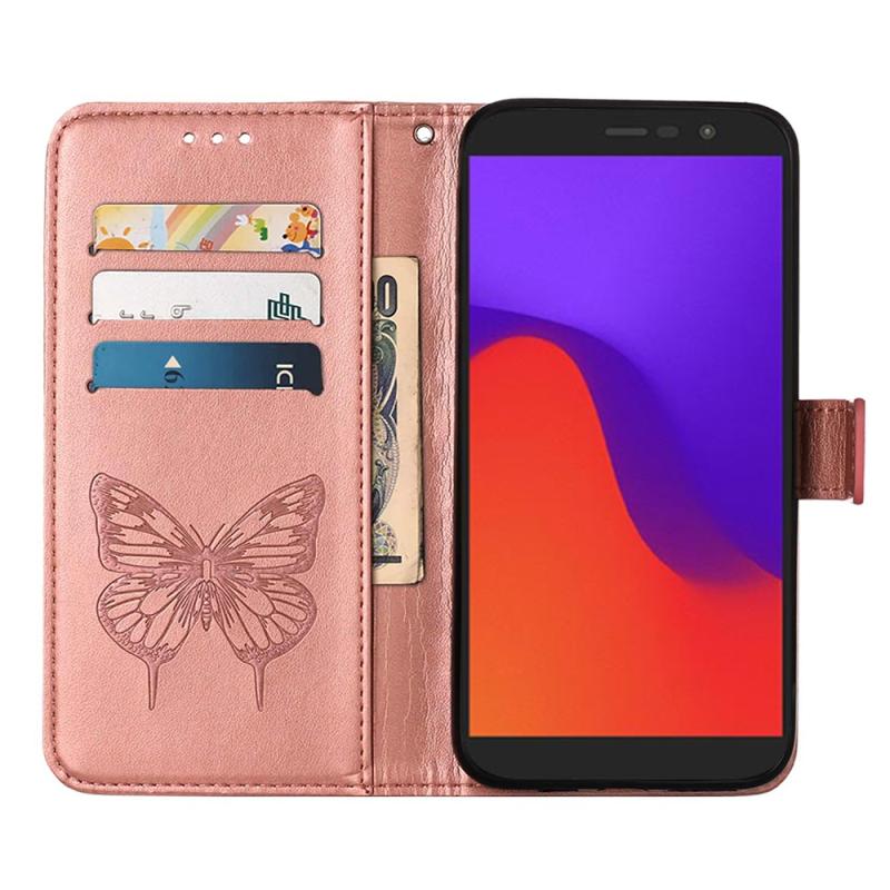 Θήκη τηλεφώνου από δέρμα με σχέδιο πεταλούδας σε ανάγλυφο για BLU View 2 2022 / 2020 (Ροζ χρυσός)