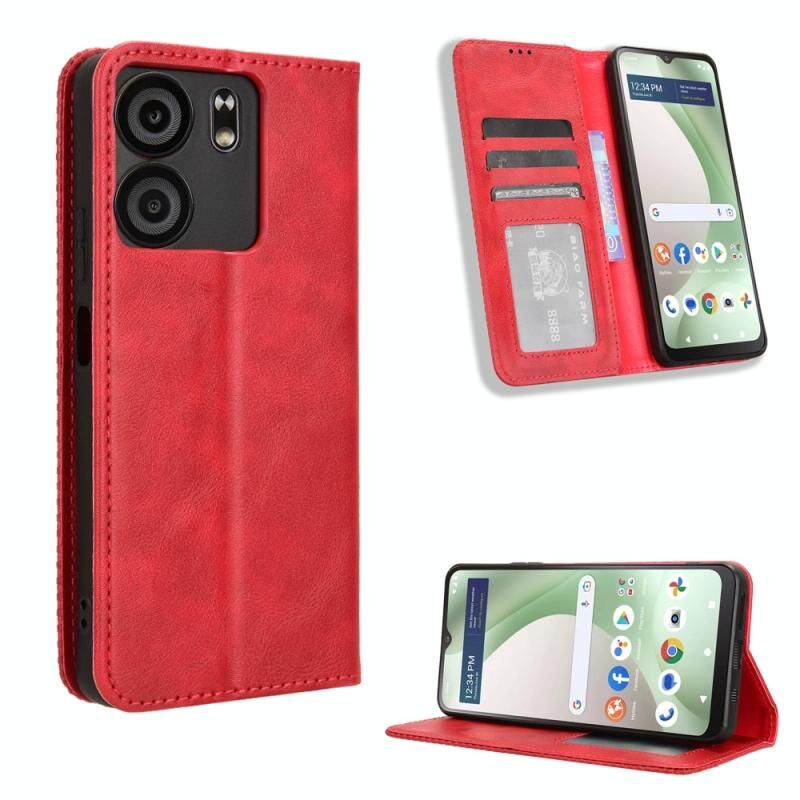 Για BLU View 5 Μαγνητική πόρπη ρετρό υφή δερμάτινη θήκη τηλεφώνου (Κόκκινο)