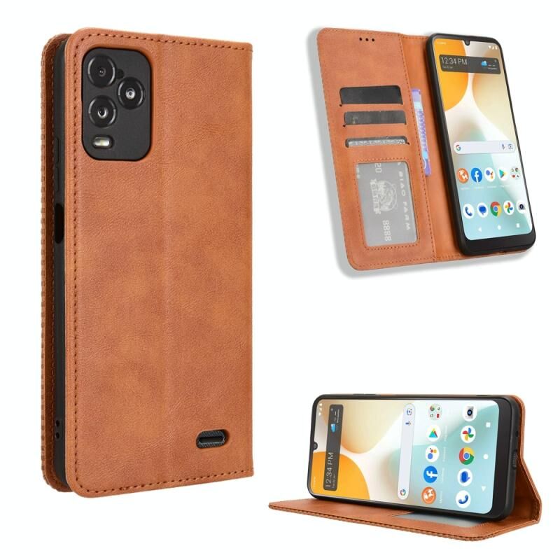 Για BLU View 5 Pro Μαγνητική πόρπη ρετρό υφή δερμάτινη θήκη τηλεφώνου (καφέ)