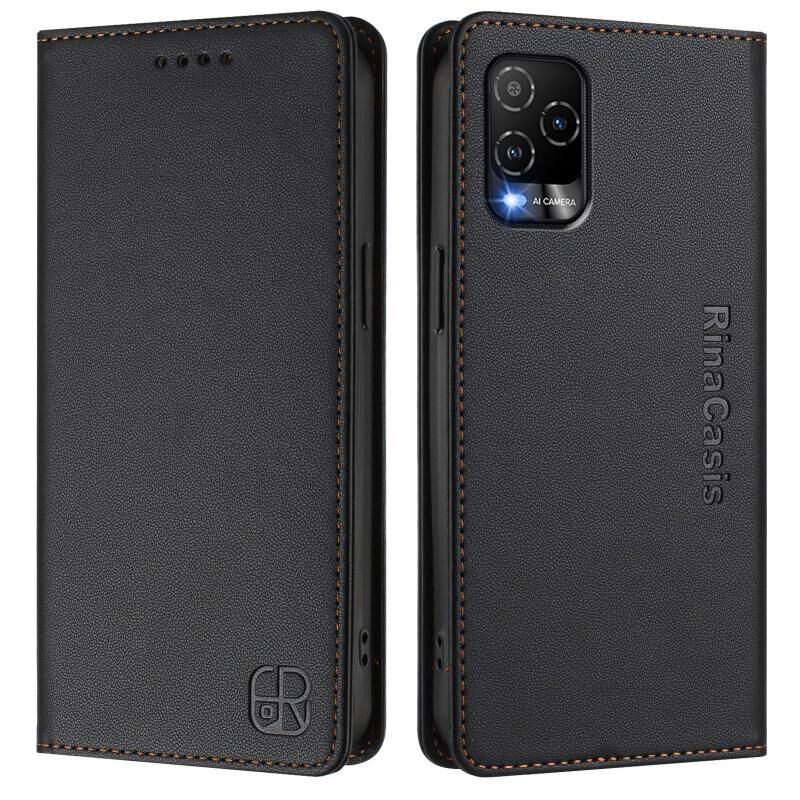 For BLU View 5 Pro RC01 Dual-Folded Magnetic Suction RFID Leather Phone Case(Black)