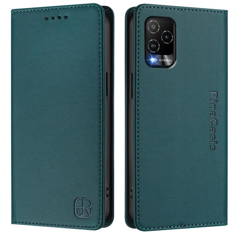 For BLU View 5 Pro RC01 Dual-Folded Magnetic Suction RFID Leather Phone Case(Dark Green)
