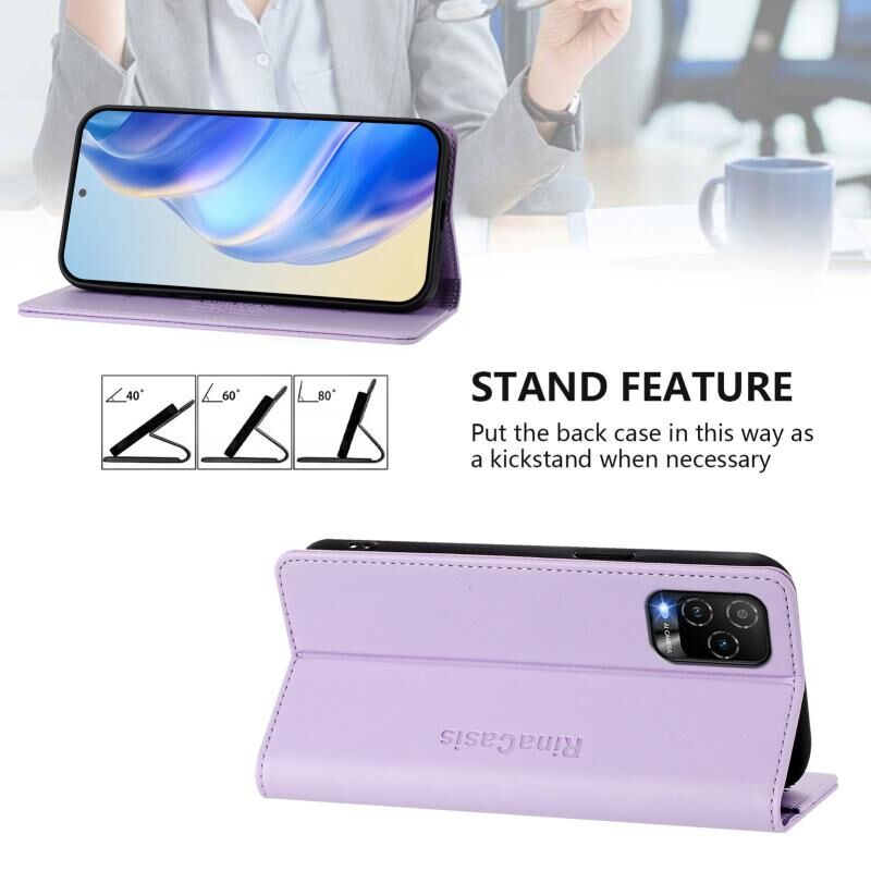 For BLU View 5 Pro RC01 Dual-Folded Magnetic Suction RFID Leather Phone Case(Light Purple)